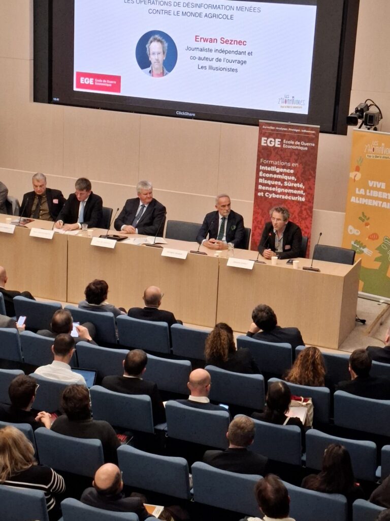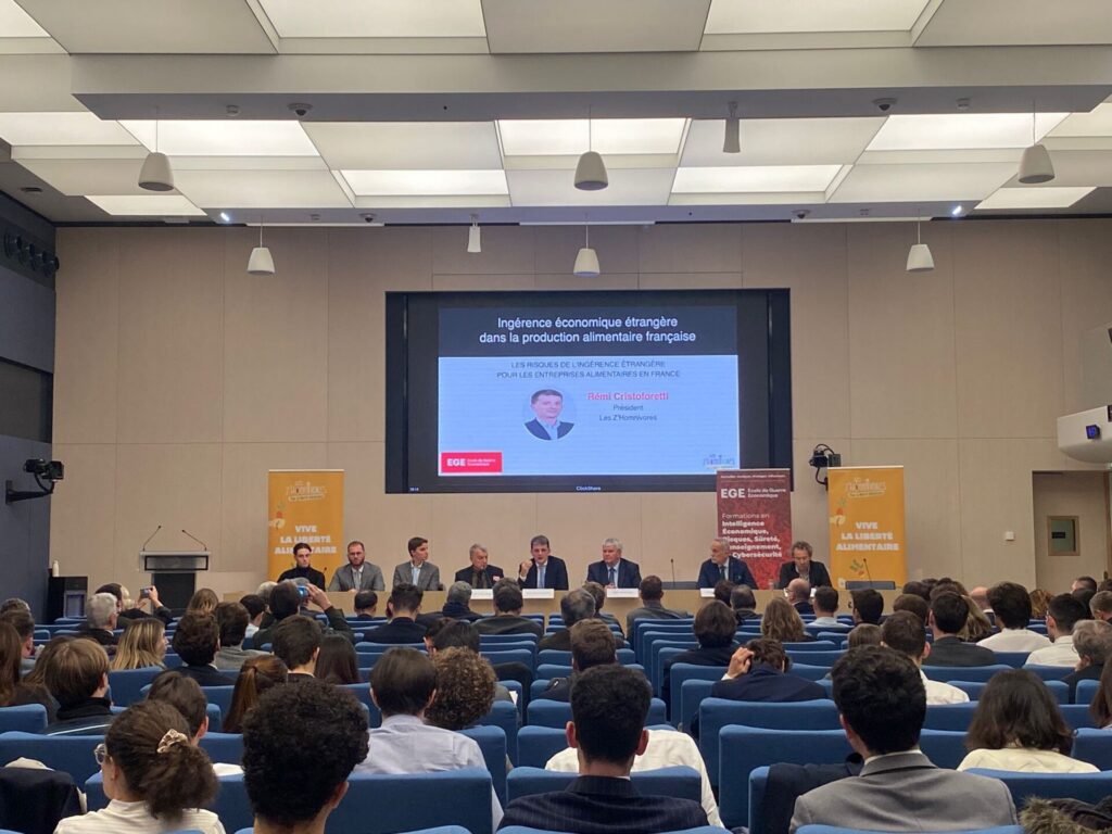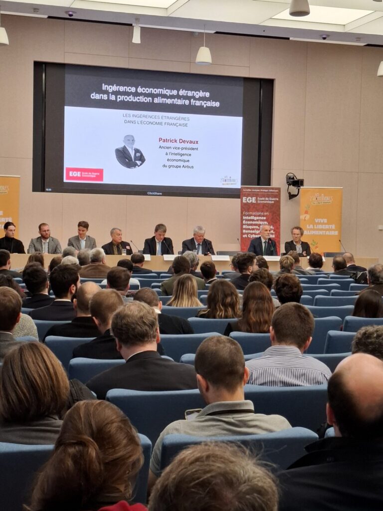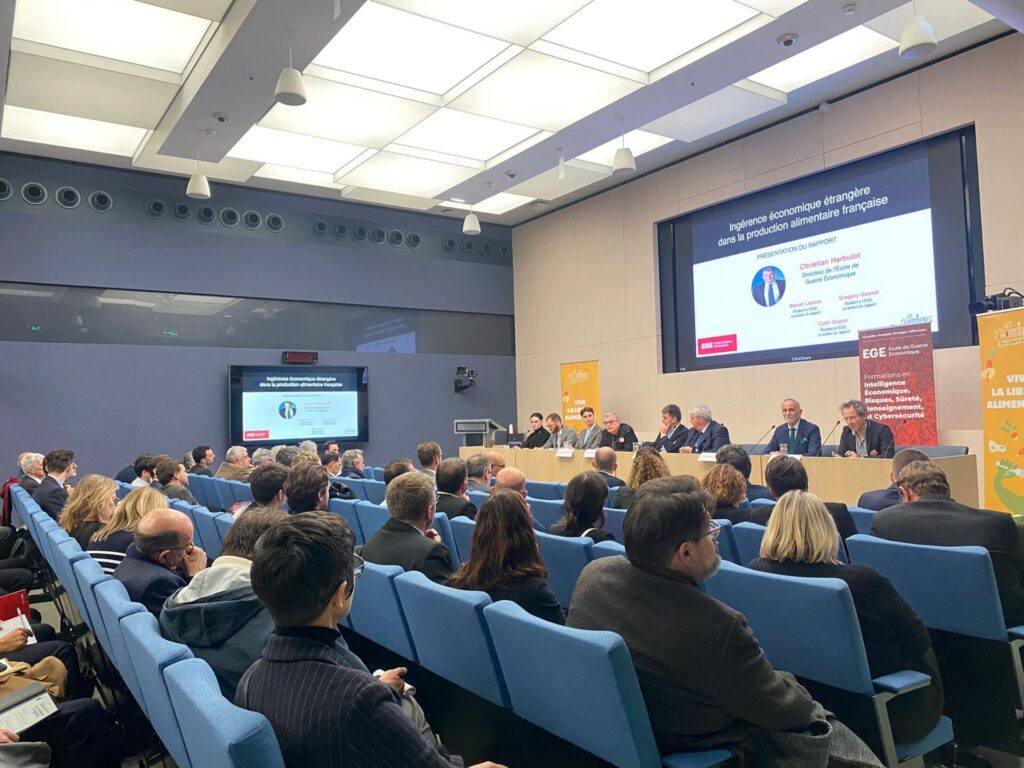 Le 2 décembre dernier, plus de 170 invités, parlementaires, acteurs de la filière alimentaire et de l’intelligence économique se sont retrouvés au Sénat pour la présentation du rapport « Ingérence étrangère dans la production alimentaire française » réalisé par l’École de Guerre Économique (EGE). Parrainée par le Sénateur Yves Bleuven, cette conférence, coorganisée par l’EGE et le think tank Les Z’Homnivores, était l’occasion de révéler les réseaux de financements américains vers des organisations animalistes s’attaquant aux entreprises alimentaires. L’objectif est de mener des campagnes de déstabilisation contre la filière agricole française. Deux grands témoins Patrick Devaux* et Erwan Seznec** étaient présents pour apporter une hauteur de vue sur les ingérences étrangères et sur les opérations de désinformations menées contre le monde agricole.