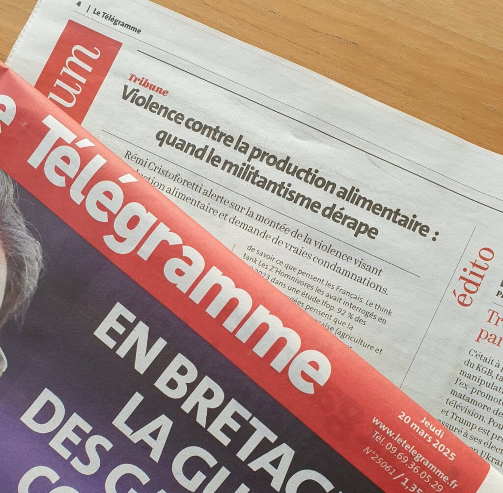 Tribune disponible sur le Télégramme : https://www.letelegramme.fr/opinions/tribune-violence-contre-la-production-alimentaire-quand-le-militantisme-derape-6781929.php